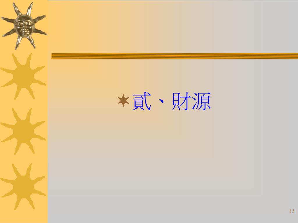 加值型及非加值型營業稅法(95 年 02 月 03 日修正) • 第8條 • 下列貨物或勞務免徵營業稅: • 十二、依法組織之慈善救濟事業標售或義賣之貨物與舉辦之義演,其收入除支付標售、義賣及義演之必要費用外,全部供作該事業本身之用 者。 • 十三、政府機構、公營事業及社會團體,依有關法令組設經營不對外營業之員工福利機構,銷售之貨物或勞務。