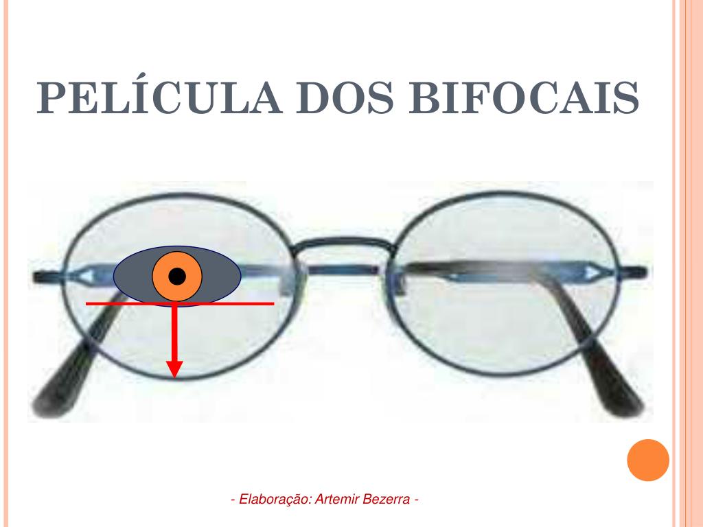 PELÍCULA DOS BIFOCAIS • A altura da película nos bifocais é medida a partir de 1 mm abaixo do limbo, até o aro inferior interno da armação. • Caso não seja possível visualizar o limbo inferior do cliente, faz-se em função da pálpebra. - Elaboração: Artemir Bezerra -