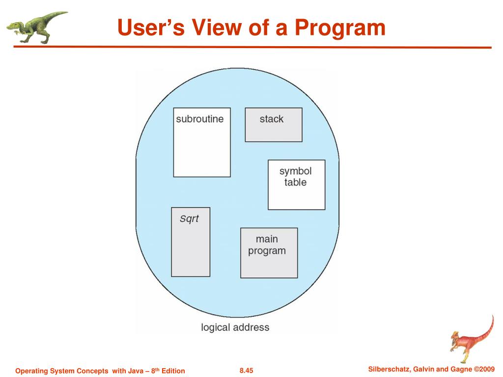 Binding of Instructions and Data to Memory Address binding of instructions and data to memory addresses can happen at three different stages Compile time: If memory location known a priori, absolute codecan be generated; must recompile code if starting location changes Load time: Must generate relocatable code if memory location is not known at compile time Execution time: Binding delayed until run time if the process can be moved during its execution from one memory segment to another. Need hardware support for address maps (e.g., base and limitregisters)