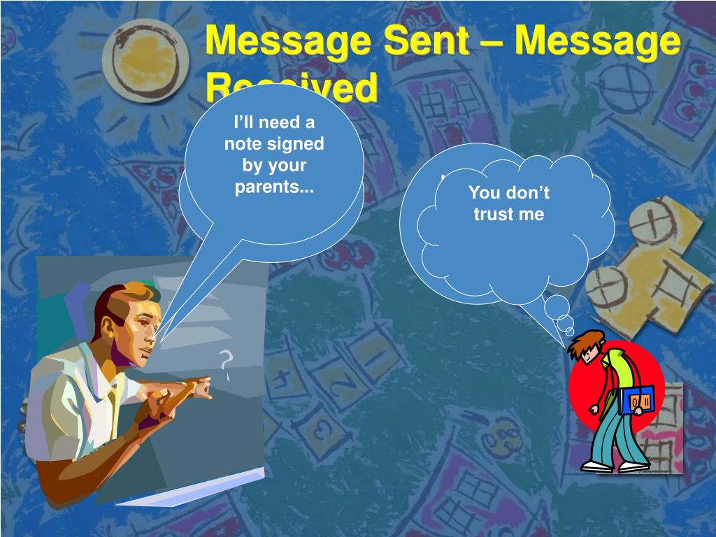 Message Sent – Message Received I’ll need a note signed by your parents... Carl, where’s your homework? I left it in my dad’s car this morning You don’t trust me