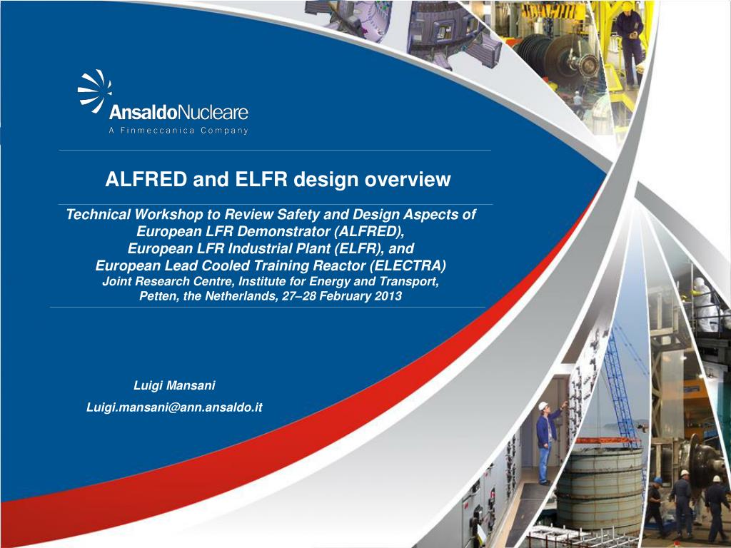 ALFRED and ELFR design overview Technical Workshop to Review Safety and Design Aspects of European LFR Demonstrator (ALFRED), European LFR Industrial Plant (ELFR), and European Lead Cooled Training Reactor (ELECTRA) Joint Research Centre, Institute for Energy and Transport, Petten, the Netherlands, 27–28 February 2013 Luigi Mansani Luigi.mansani@ann.ansaldo.it
