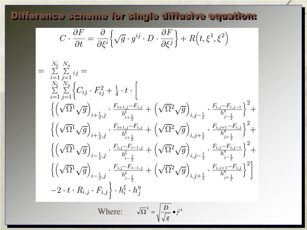 Diffusive equations system: Difference sheme for diffusive equations system: