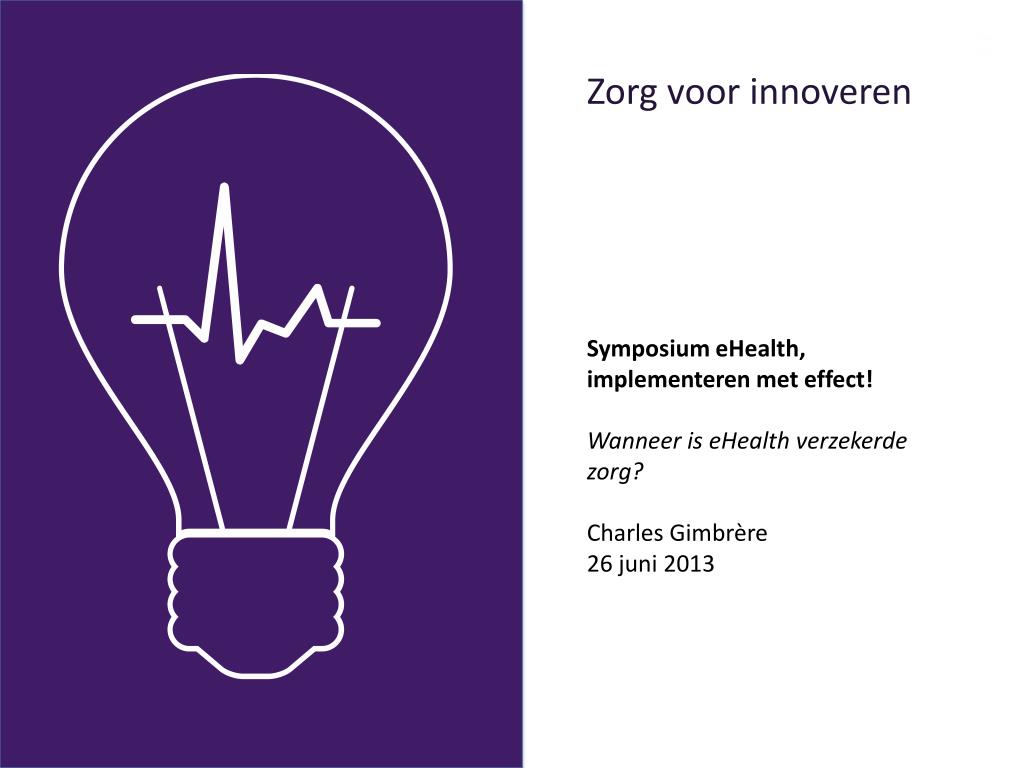Zorg voor innoveren Symposium eHealth, implementeren met effect! Wanneer is eHealth verzekerde zorg? Charles Gimbrère 26 juni 2013