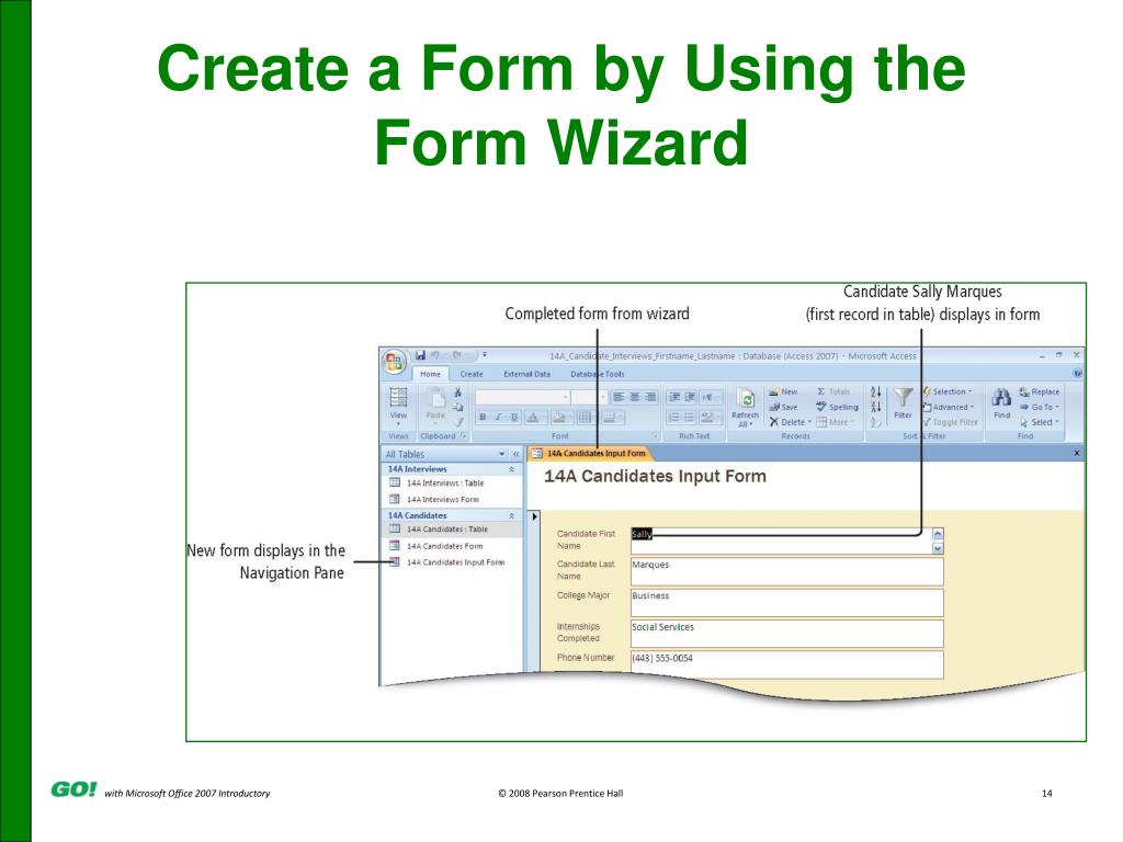 PowerPoint Presentation to Accompany GO! with Microsoft® Office 2007 Introductory Chapter 14 Forms, Filters, and Reports