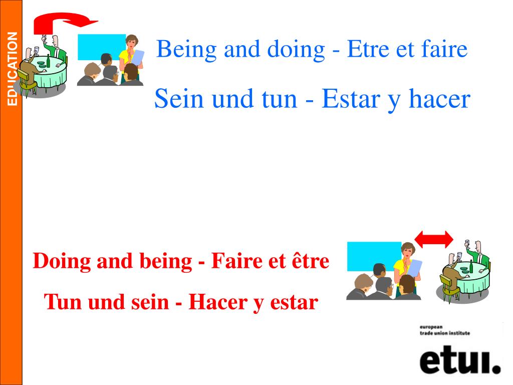 Being and doing - Etre et faire Sein und tun - Estar y hacer Doing and being - Faire et être Tun und sein - Hacer y estar