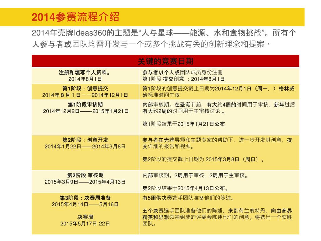 2013回顾 &2014实施方案 www.shellideas360.com 具体大赛信息请参考该网址,将于2014年8月1日更新并接受注册