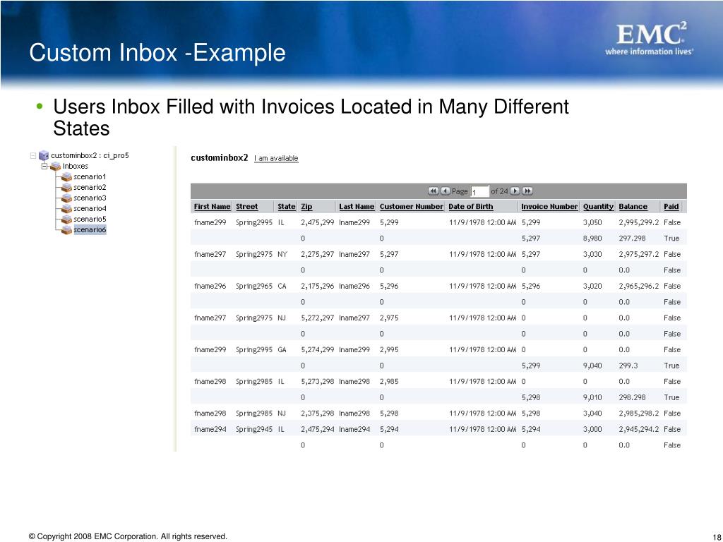 Custom Inbox -Example • Users Inbox Filled with Invoices Located in Many Different States
