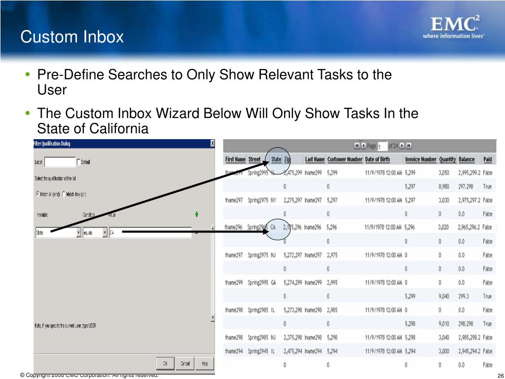 Custom Inbox • Pre-Define Searches to Only Show Relevant Tasks to the User • The Custom Inbox Wizard Below Will Only Show Tasks In the State of California