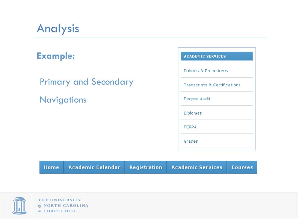 Analysis Example: Primary and Secondary Navigations