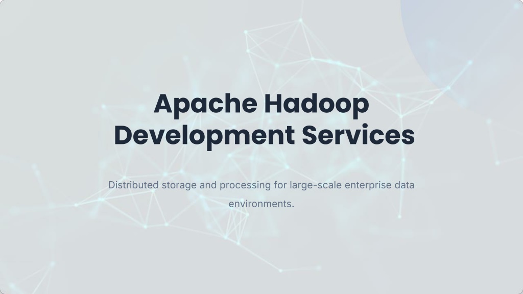 Apache Hadoop Development Services Distributed storage and processing for large-scale enterprise data environments.