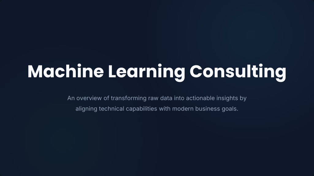 1. Machine Learning Consulting An overview of transforming raw data into actionable insights by aligning technical capabilities with modern business goals.