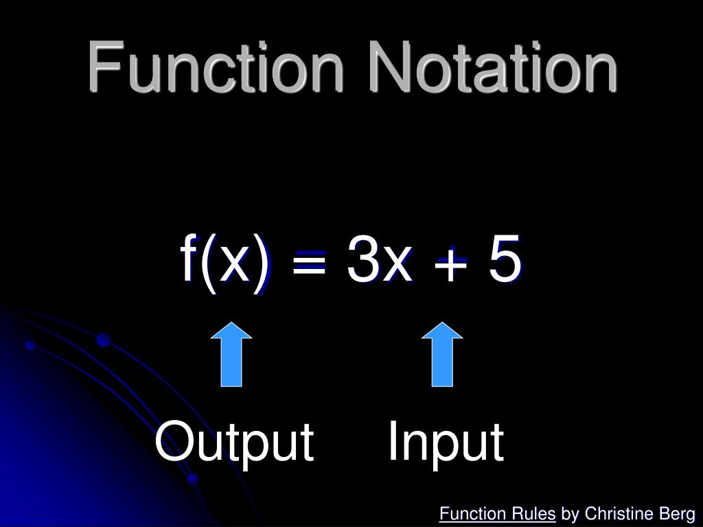 Function Notation f(x) = 3x + 5 Output Input Function Rules by Christine Berg