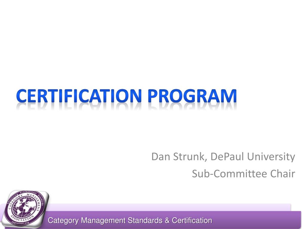 Certification Program Dan Strunk, DePaul University Sub-Committee Chair