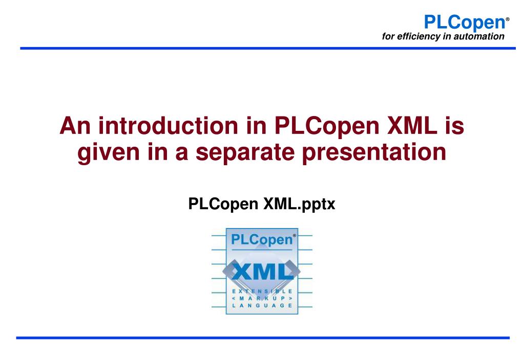 An introduction in PLCopen XML is given in a separate presentation PLCopen XML.pptx