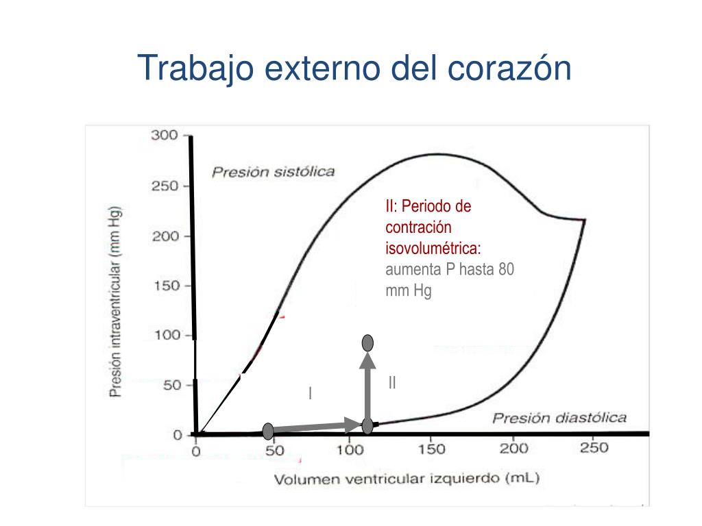 II: Periodo de contración isovolumétrica: aumenta P hasta 80 mm Hg II I Trabajo externo del corazón