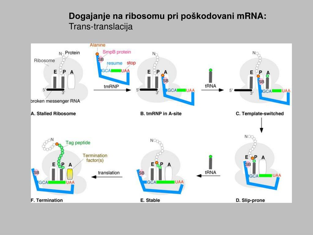 Dogajanje na ribosomu pri poškodovani mRNA: Trans-translacija