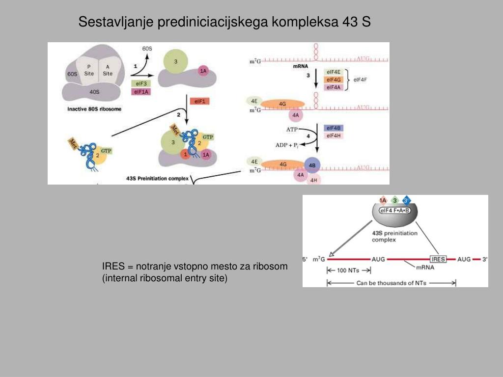 Sestavljanje prediniciacijskega kompleksa 43 S IRES = notranje vstopno mesto za ribosom (internal ribosomal entry site)
