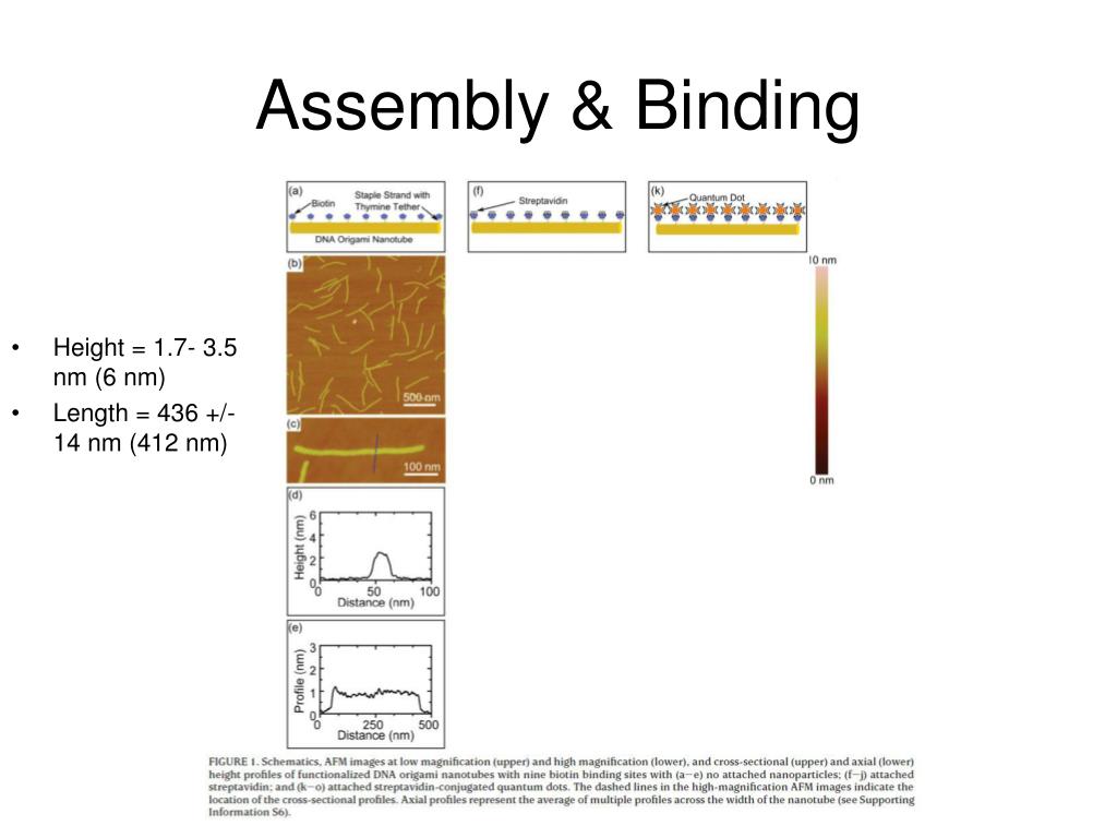 Assembly & Binding • Height = 1.7- 3.5 nm (6 nm) • Length = 436 +/- 14 nm (412 nm)