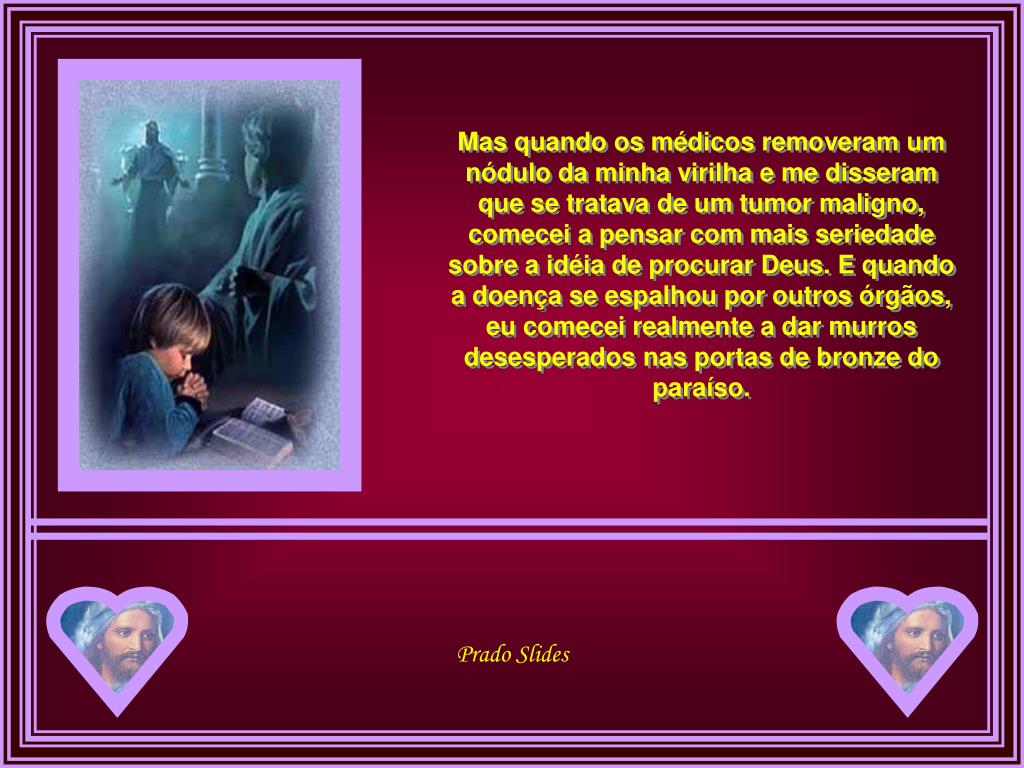 Mas quando os médicos removeram um nódulo da minha virilha e me disseram que se tratava de um tumor maligno, comecei a pensar com mais seriedade sobre a idéia de procurar Deus. E quando a doença se espalhou por outros órgãos, eu comecei realmente a dar murros desesperados nas portas de bronze do paraíso.