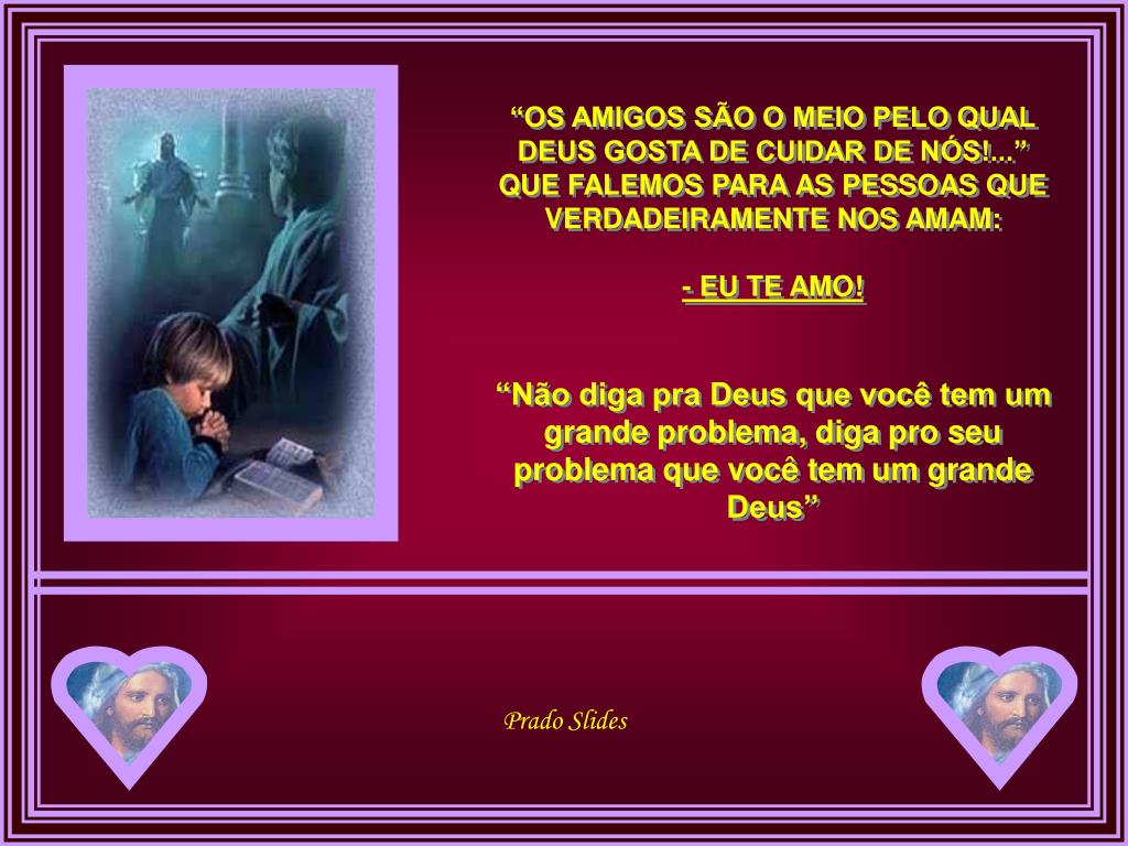 “OS AMIGOS SÃO O MEIO PELO QUAL DEUS GOSTA DE CUIDAR DE NÓS!...” QUE FALEMOS PARA AS PESSOAS QUE VERDADEIRAMENTE NOS AMAM:- EU TE AMO! “Não diga pra Deus que você tem um grande problema, diga pro seu problema que você tem um grande Deus”