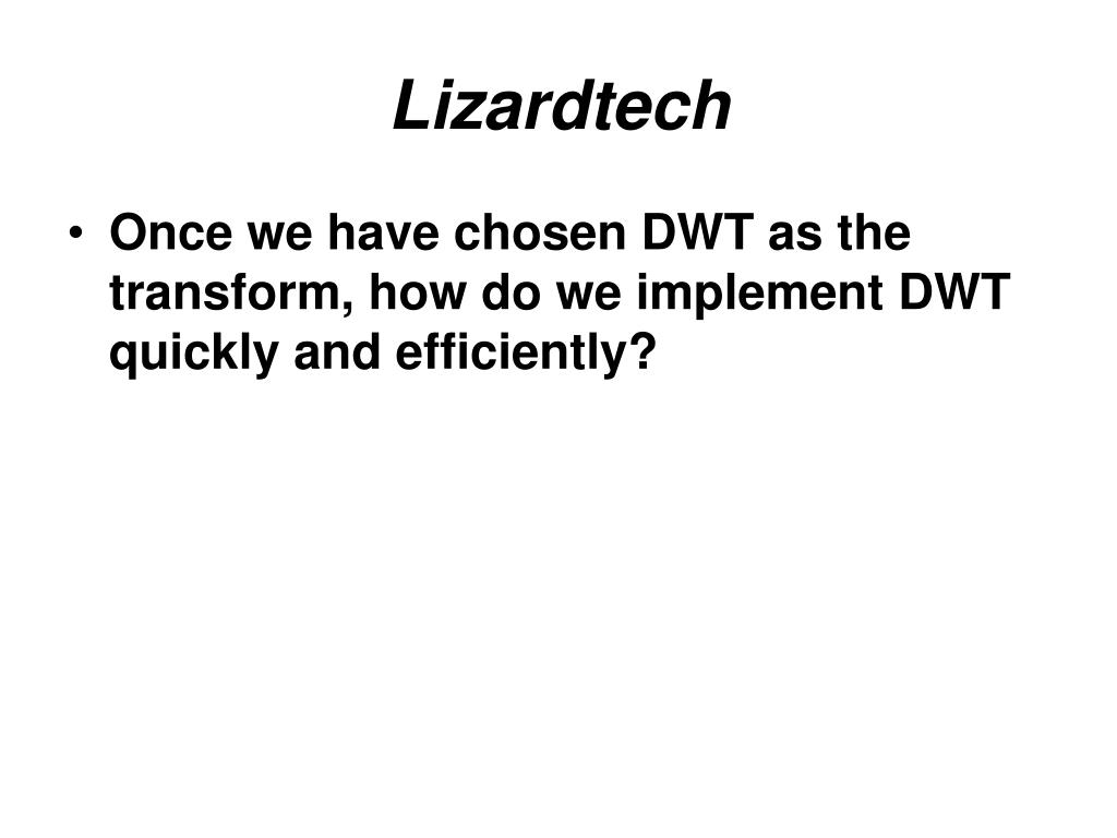 Lizardtech • Once we have chosen DWT as the transform, how do we implement DWT quickly and efficiently?
