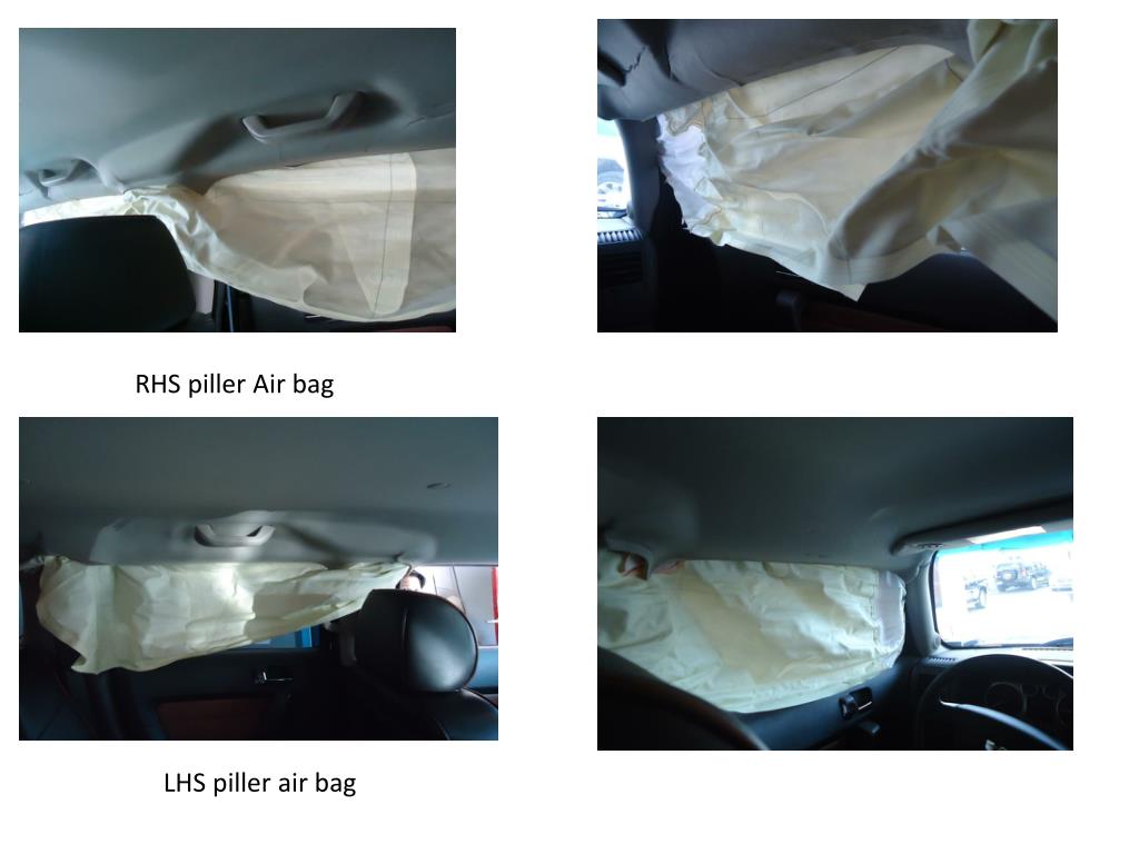 RHS piller Air bag. LHS piller air bag. Passenger seatbelt Stuck up. Driver seat belt Stuck up.