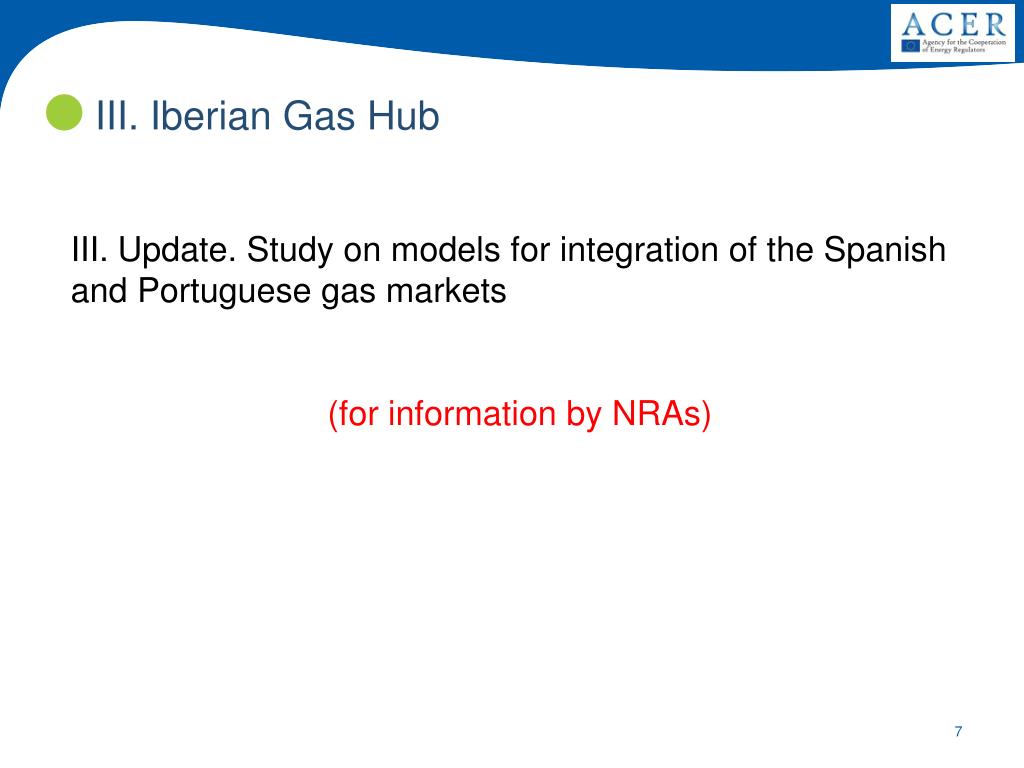 III. Iberian Gas Hub • III. Update. Study on models for integration of the Spanish and Portuguese gas markets • (for information by NRAs)
