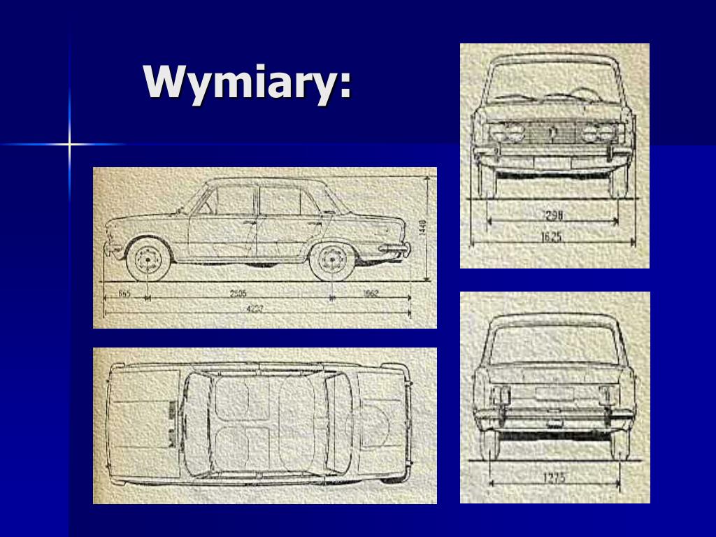 Fiat 125p Samochód małolitrażowy, pięcioosobowy. Silnik czterosuwowy, górnozaworowy, o pojemności 1295 cm3 stopniu sprężania 9, mocy 60 KM, chłodzeniu wodnym. Instalacja elektryczna 12 V. Skrzynia biegów 4-biegowa + bieg wsteczny, całkowicie synchronizowana. Dźwignia biegów pod kierownicą. Napęd na tylne koła. Maksymalna szybkość 140 km/h. Zużycie paliwa - 9,5 l/100 km. Dopuszczalne obciążenie - 400 kg.