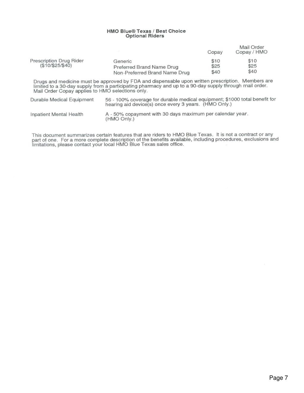 HMO Terms and Conditions This summary of benefits is intended only to highlight your benefits and should not be relied upon to fully determine coverage. Please refer to your Summary of Benefits for a complete listing of services, limitations and exclusions. The Summary of Benefits prevails in the event of discrepancies. Page 5