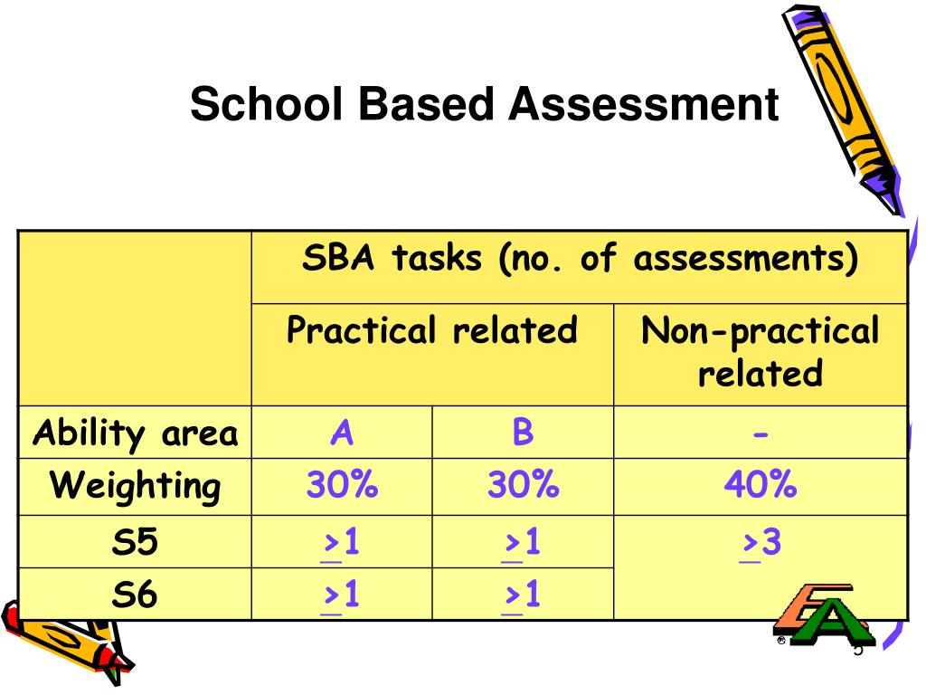 SBA - Non-Practical Related Tasks • Data analysis and interpretation • Poster presentation • Development of multimedia artifact • Commentary/reflection of articles • Small-scale projects Examples: