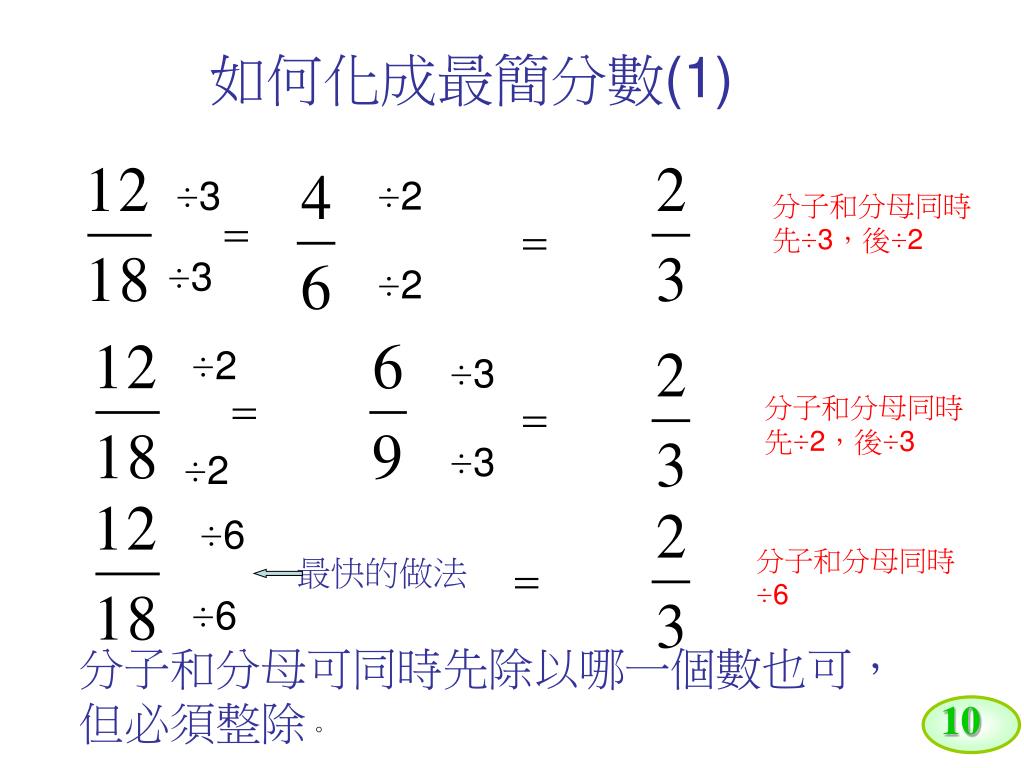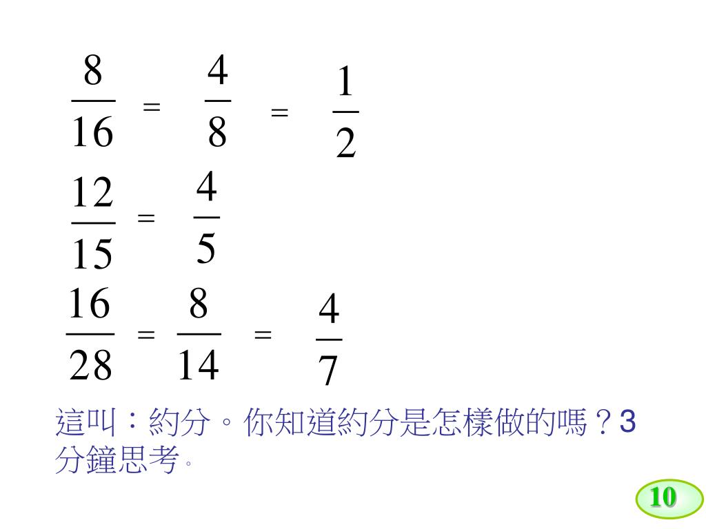 10 這叫:約分。你知道約分是怎樣做的嗎?3分鐘思考。