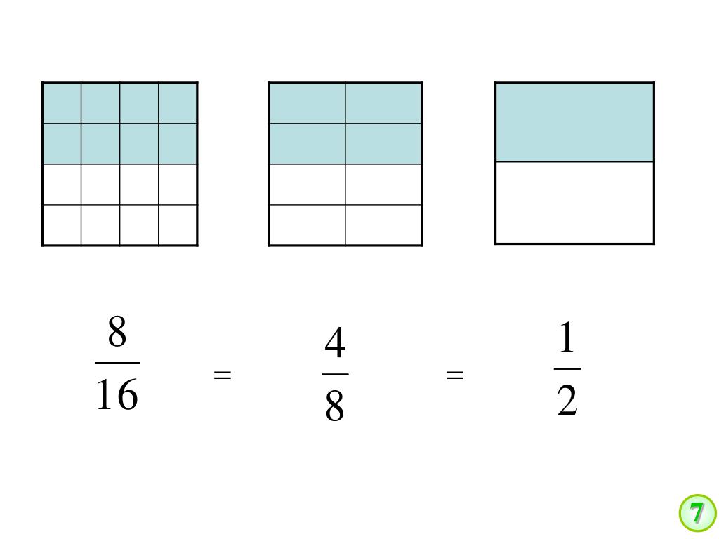 6 練 習 題 3 ( ) ( ) _____ = _______ = _______ 6 1 2 1 8 1 ( ) ( ) _____ = _______ = _______ 5 1 5 3 5