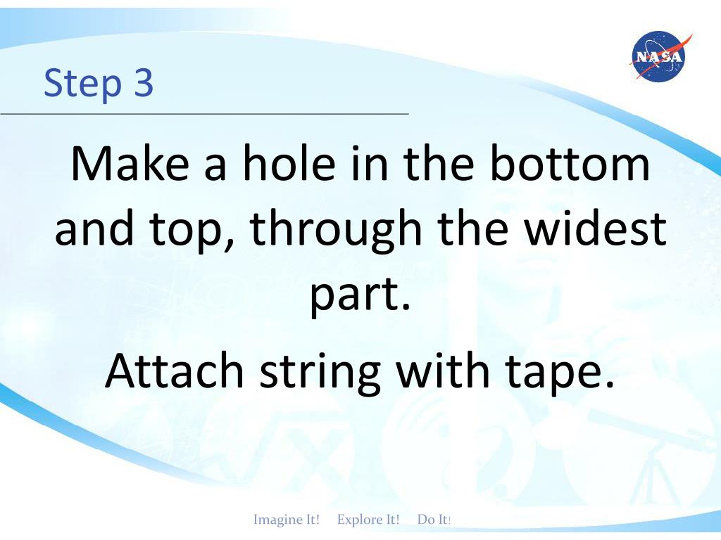 Step 3 Make a hole in the bottom and top, through the widest part. Attach string with tape.