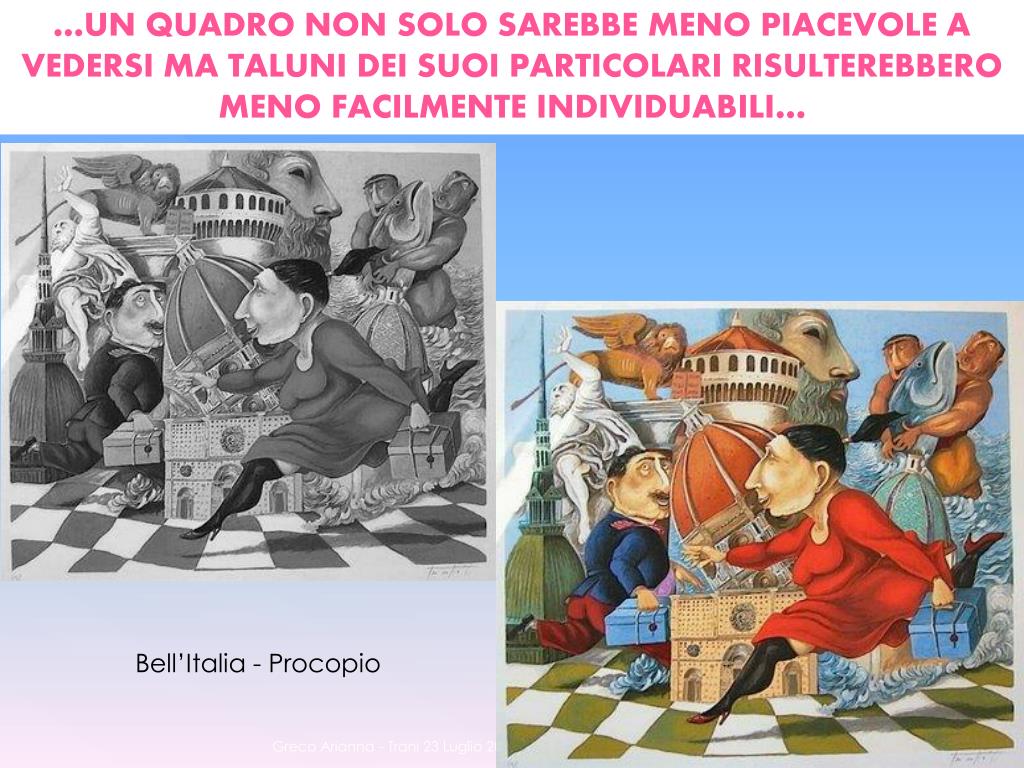 …UN QUADRO NON SOLO SAREBBE MENO PIACEVOLE A VEDERSI MA TALUNI DEI SUOI PARTICOLARI RISULTEREBBERO MENO FACILMENTE INDIVIDUABILI… Bell’Italia - Procopio Greco Arianna - Trani 23 Luglio 2011