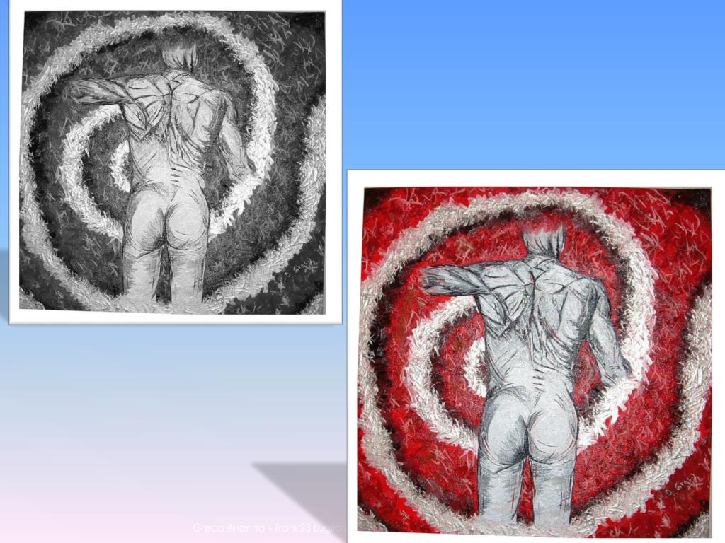 Espressione pittorica ed emozioni. “Per guardare un’opera d’arte bisogna unire due voci, la voce della banalità (ciò che uno vede e sa) e la voce della singolarità (riempire la banalità con l’emozione che appartiene solo a me stesso). Arianna Greco – TRANI 23 Luglio 2011.