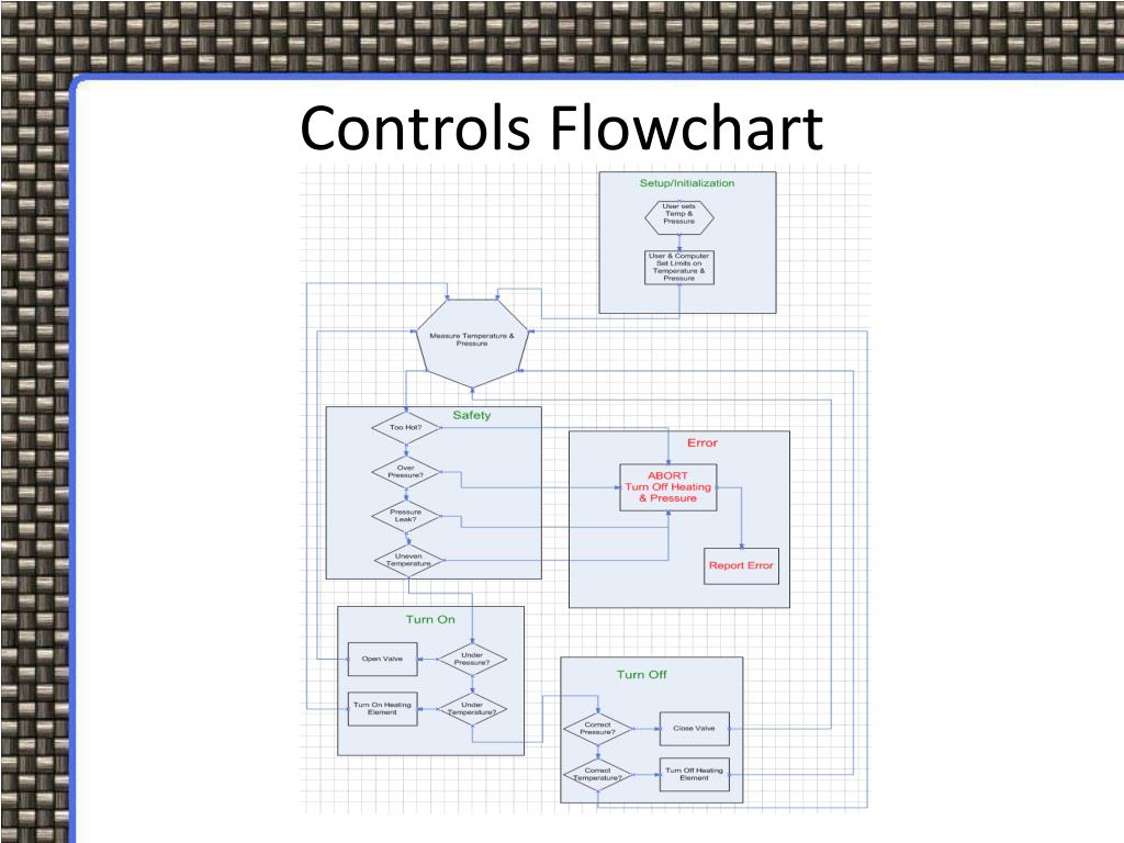 Preliminary Test Plan • Pressure Vessel: Hydrostatically Tested by RGE • Heating: Physically Tested at ambient Pressure • Electrical: Simulated then Physically Tested as a system • Controls: Extensive Simulation then Physically Tested • Pressurization: Physically Tested to ensure safety • Detailed Test Matrices to Follow in MSD 2