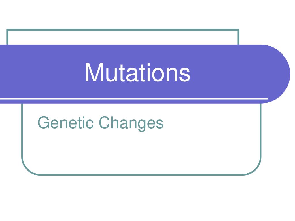 Mutations. Genetic Changes. What is a mutation ?. A change in the base sequence of DNA. What causes mutations?. Mistakes in replication (spontaneous) Mistakes in base pairs Environmental factors (mutagens) High energy radiation (X rays, UV rays)