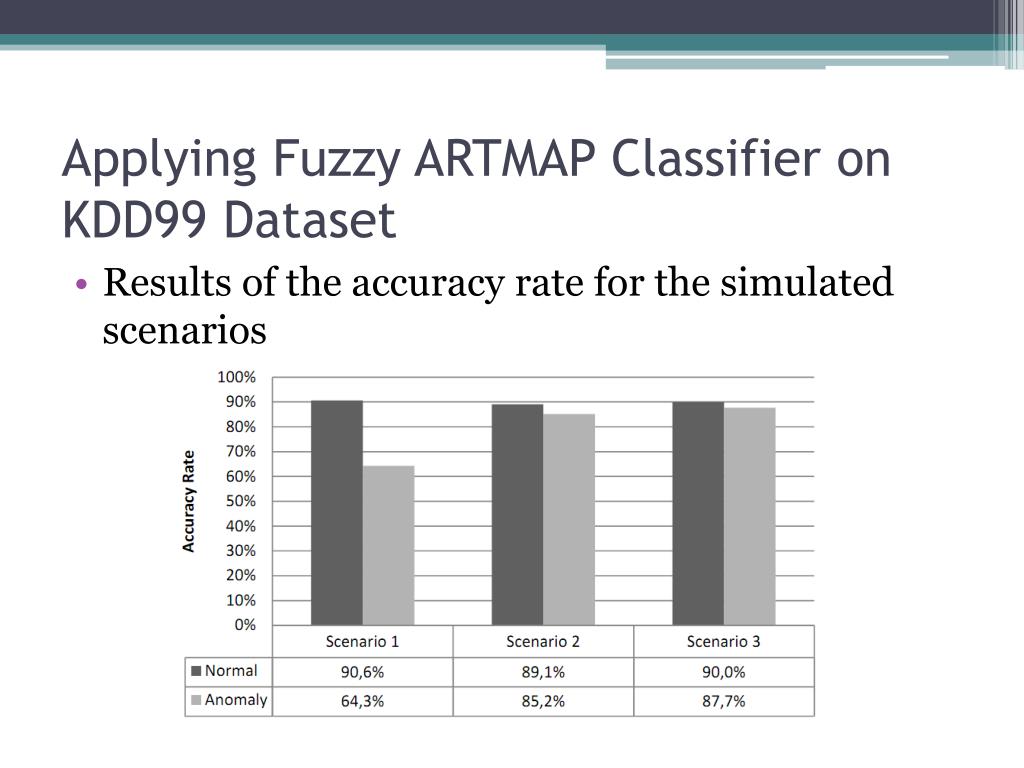 Applying Fuzzy ARTMAP Classifier on KDD99 Dataset • Results of the accuracy rate for the simulated scenarios