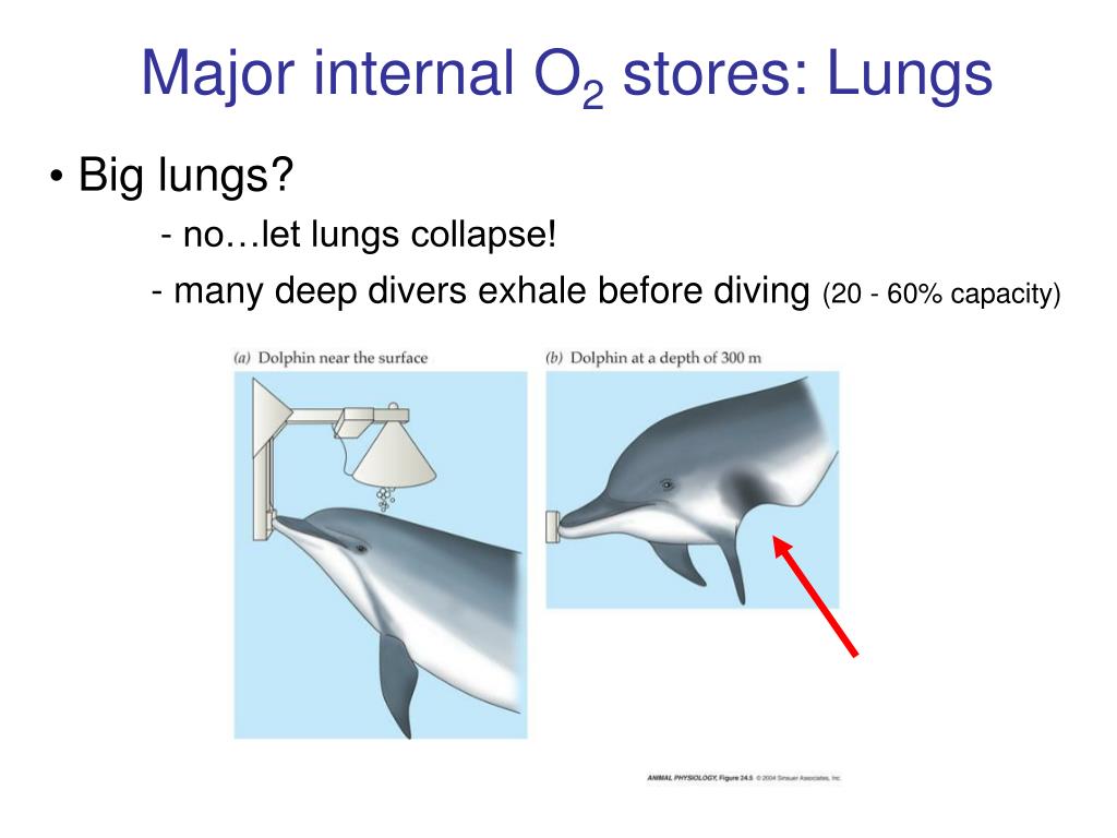 Major internal O2 stores: Lungs • Big lungs? - no…let lungs collapse! - many deep divers exhale before diving (20 - 60% capacity)