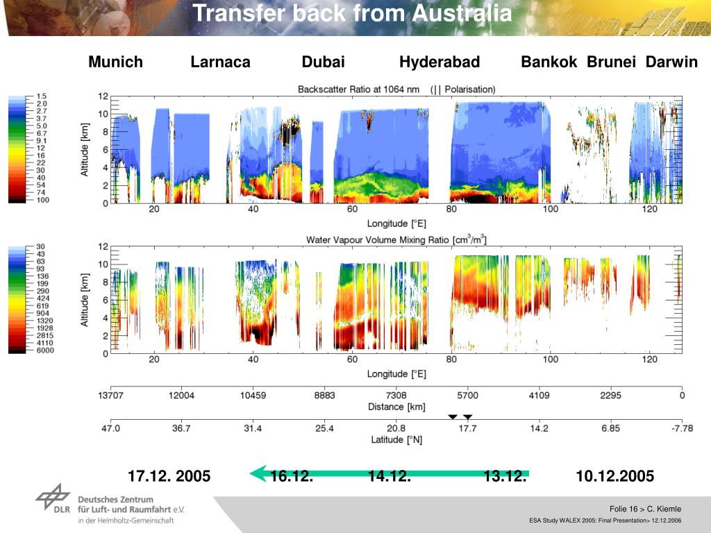 Transfer back from Australia Munich Larnaca Dubai Hyderabad Bankok Brunei Darwin ECMWF DIAL 17.12. 2005 16.12. 14.12. 13.12. 10.12.2005