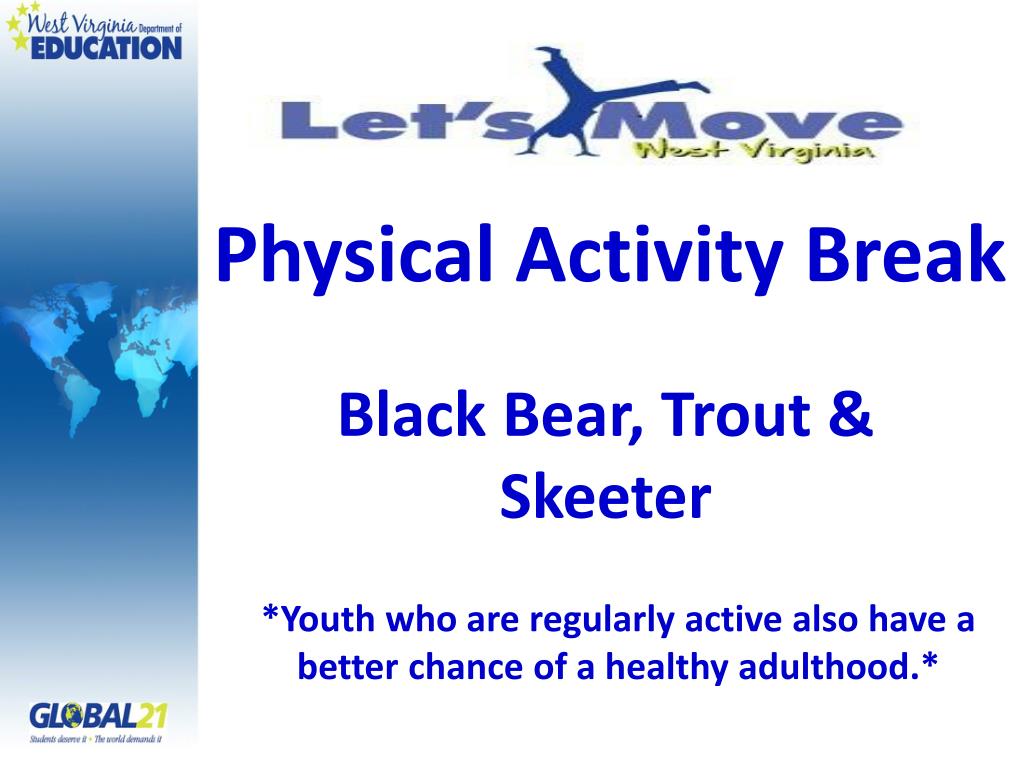 Physical Activity Break Black Bear, Trout & Skeeter *Youth who are regularly active also have a better chance of a healthy adulthood.*