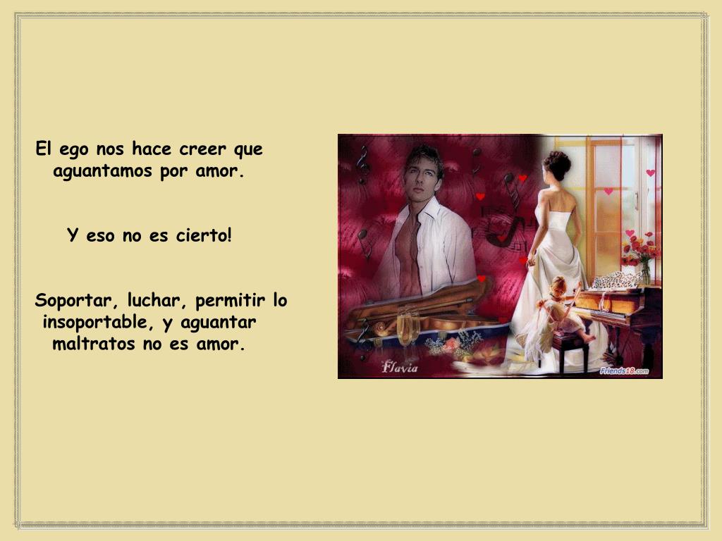 El ego nos hace creer que aguantamos por amor. Y eso no es cierto! Soportar, luchar, permitir lo insoportable, y aguantar maltratos no es amor.