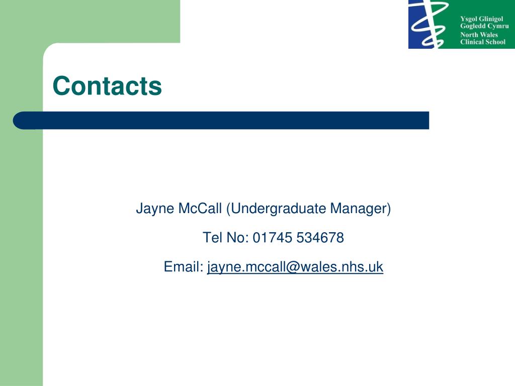 Contacts Jayne McCall (Undergraduate Manager) Tel No: 01745 534678 Email: jayne.mccall@wales.nhs.uk