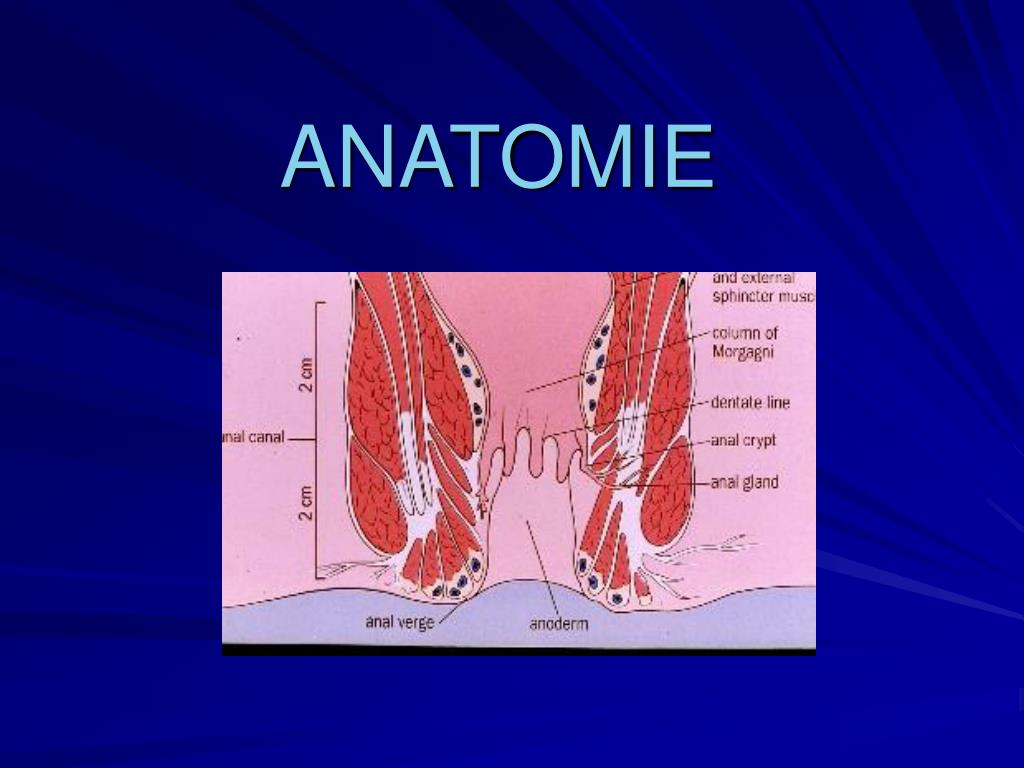 Le canal anal est la portion toute terminale du tube digestif. • C’est une zone de haute pression qui sépare et isole le rectum sus-jacent du milieu extérieur. • C’est un conduit de 4 cm de long. • Sa limite supérieure est la jonction ano-rectale: - au TR: elle correspond au bord supérieur de l’appareil sphinctérien - en anuscopie, c’est la zone de transition entre la muqueuse rose clair du rectum et la muqueuse rouge foncé du canal anal • Sa limite inférieure est la marge ano-cutanée