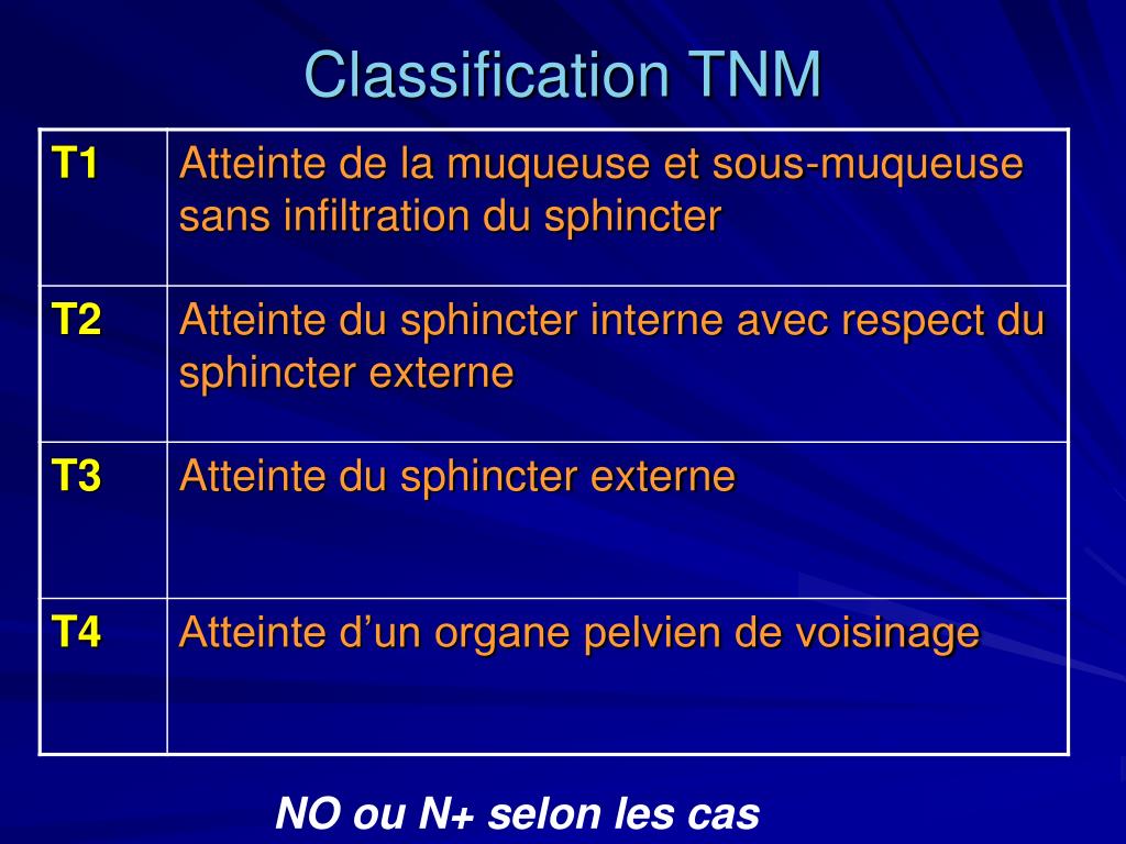 Classification TNM NO ou N+ selon les cas