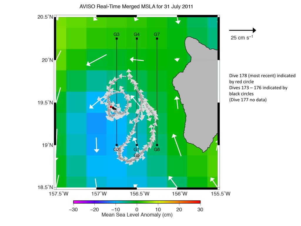 Dive 178 (most recent) indicated by red circle Dives 173 – 176 indicated by black circles (Dive 177 no data)