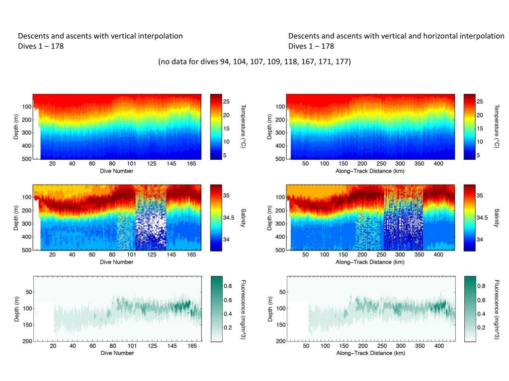 Descents and ascents with vertical interpolation Dives 1 – 178 Descents and ascents with vertical and horizontal interpolation Dives 1 – 178 (no data for dives 94, 104, 107, 109, 118, 167, 171, 177)