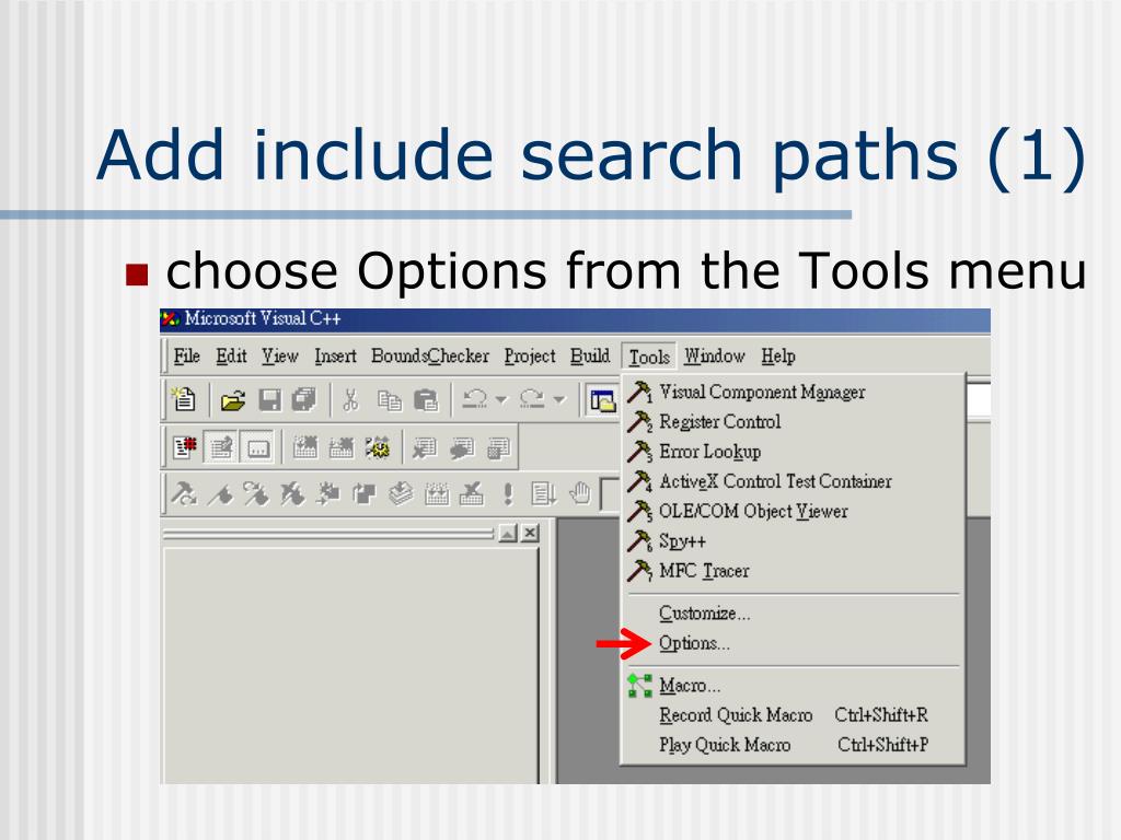 Preparing for Compilation • 設定工作環境 • Add include search paths • Add linker search paths • Add project link libraries