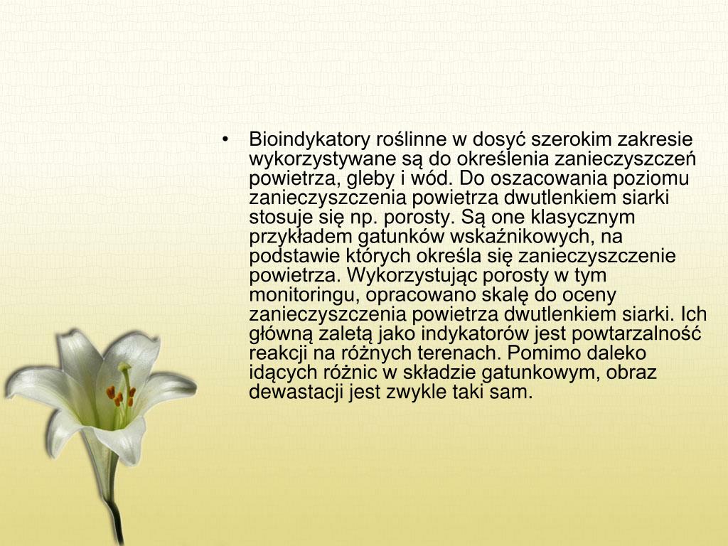 ROŚLINY JAKO BIOINDYKATORY ŚRODOWISKA.