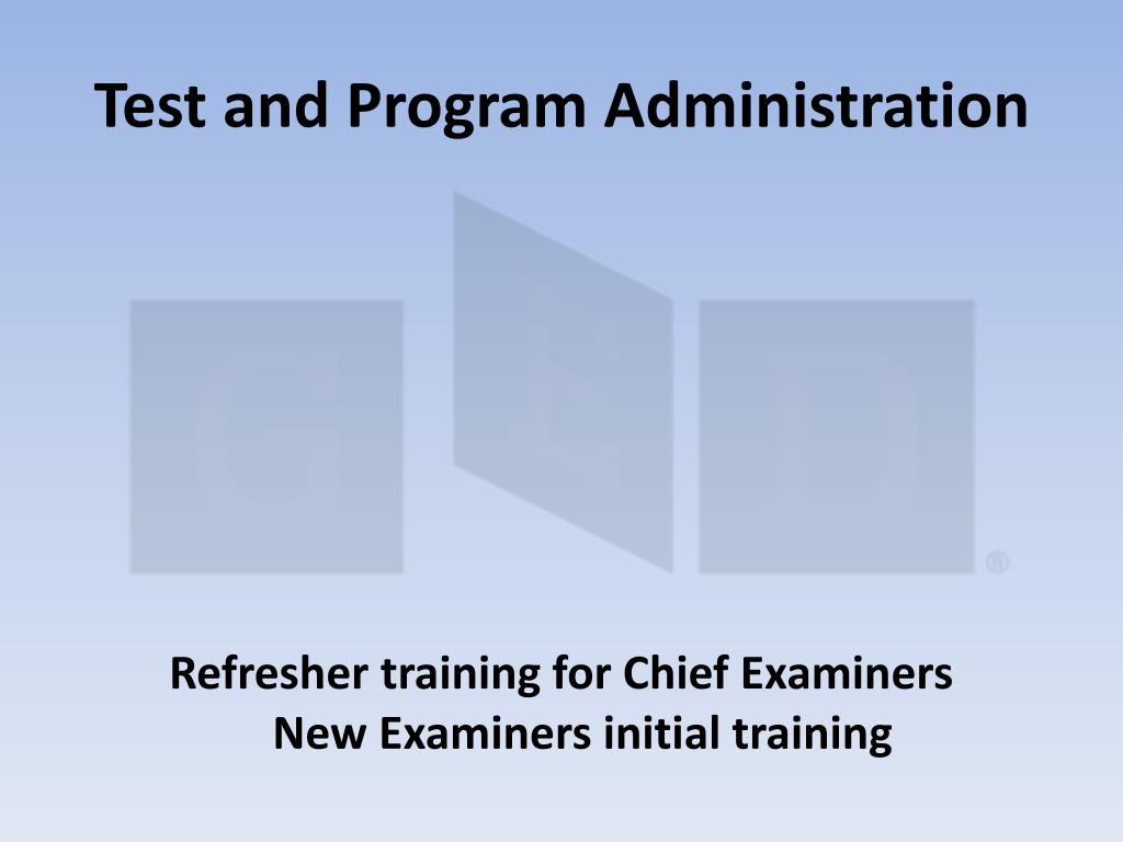 Test and Program Administration Refresher training for Chief Examiners New Examiners initial training